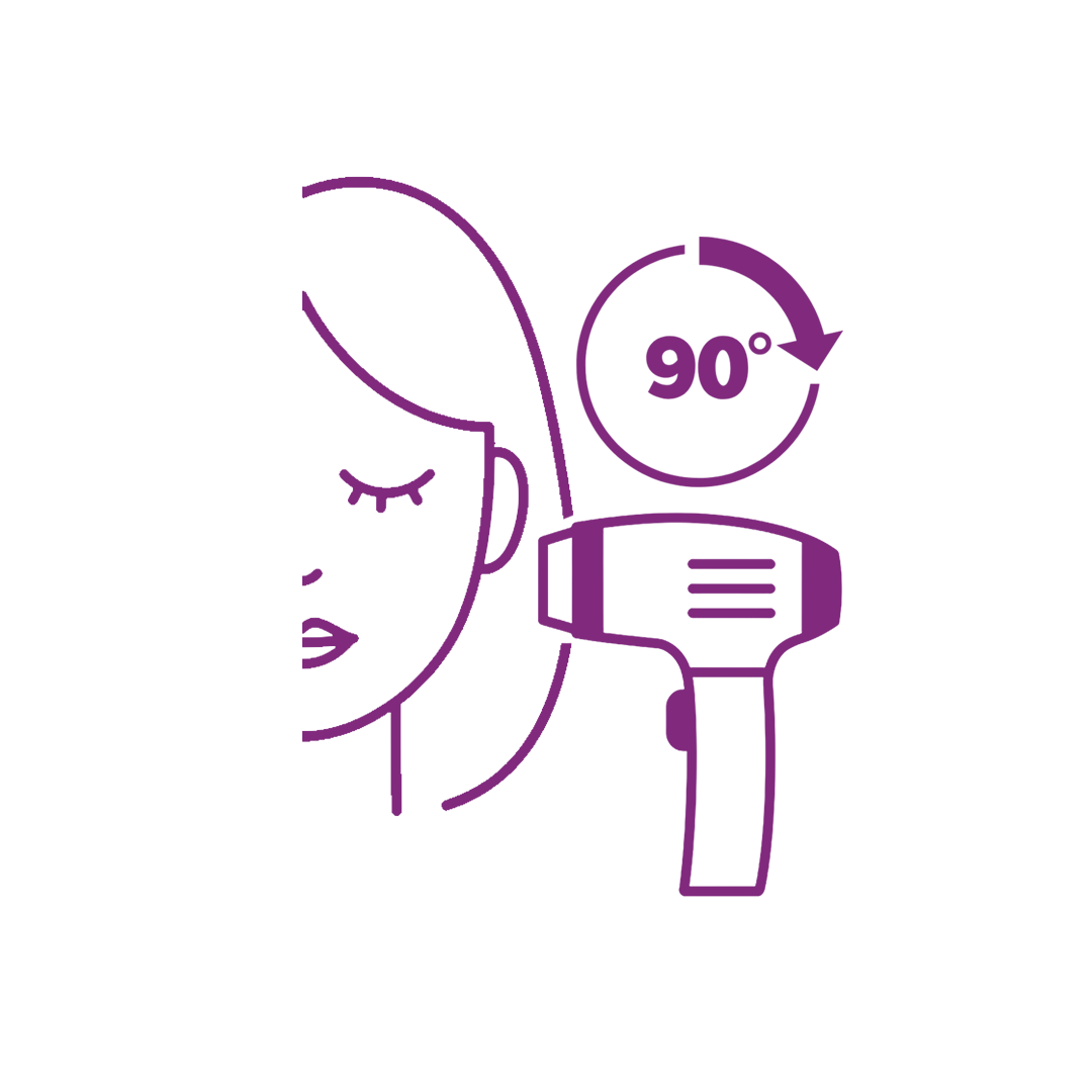وجّهي الجهاز على بشرتك بزاوية 90 درجة