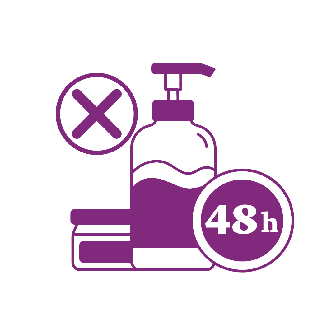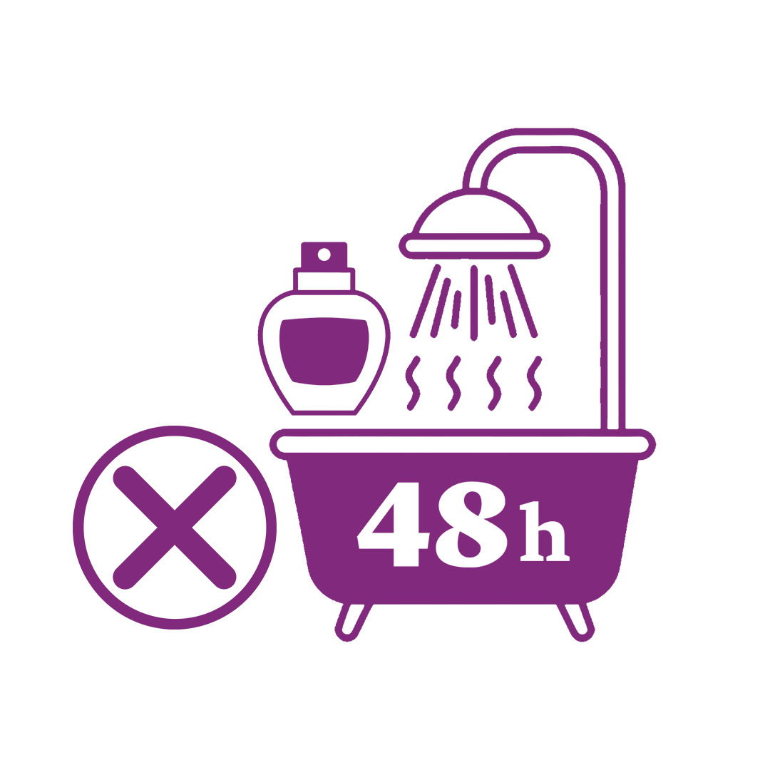 تجنّبي استخدام المنتجات المعطرة أو الاستحمام بماء ساخن لمدة 48 ساعة بعد الجلسة.